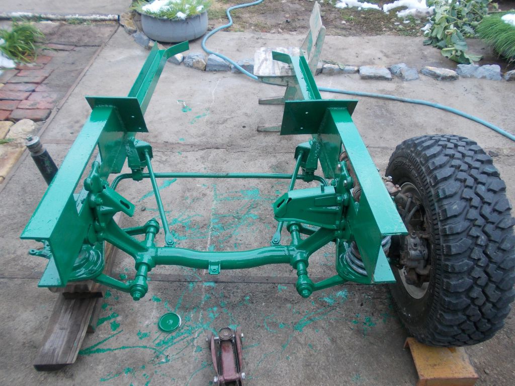 Правда на пару тройку минут и потом опять дождь, но мне оказалось достаточно. День удался. Одна рессора почти сдалась. Нужно только дырки в щеках серьги со стороны рамы рассверлить и палец приварить к ней. А дальше покрасить и пока наживить гражданский мост. Ведь вояки пока еще не собраны.
