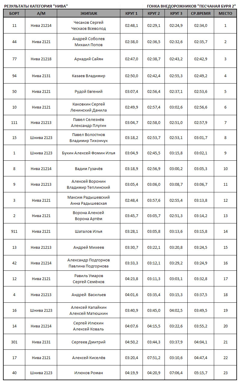 Новички - ребята, кто приехал первый раз участвовать в соревнованиях - песчаные карьеры - это вообще отдельный вид грунта, на нем совершенно иначе надо управлять машиной нежели чем в грязи и пр., что очень не просто. В общем я что хочу сказать - вы все достойно откатали, я прекрасно представляю сколько сил и смелости вам потребовалось чтобы направлять автомобиль в атаку песчаных подъемов и спусков - МОЛОДЦА!!! Я болел за вас! Теперь карьеры вам не страшны!