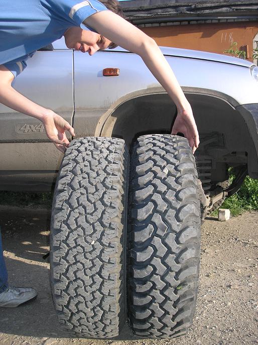 ... По поводу нивского размера не знаю... и вообще не уверен, т.к. когда уже я вчера пришел покупать и сходу сказал, что хочу "... Муды 215/75 на 15" он немного подумал и спросил "А на витрине они есть?"...