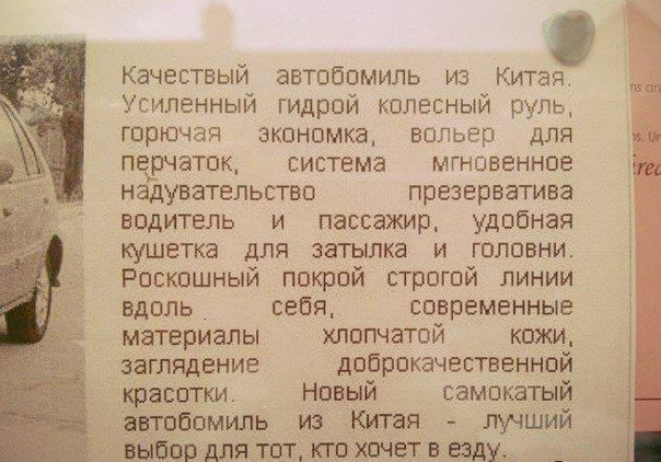 yyy: Она всё может, и даже завтрак приготовить, поэтому обладателю Нивы жена не нужна.