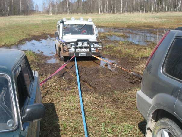 Стоим теперь с девушкой. Я предлагаю выставить ее на дорогу в качестве «наживки на грузовик». Пробуем: и первый же «кукурузер» ее! Я внезапно вылезаю из кювета, трос в руке... О, как стартует с места кукурузер! УХХХ!!!!!! Даже зимой!!! И я решил больше не вылезать впредь до момента сцепки. Партизаню — курю в кулачок в кювете. И тут случилось счастье на мою больную голову — сосед на Паджере проезжал мимо и остановился. Я к нему, так мол и так... Человек он опытный и Ниву мы в момент вытянули прямо с дороги. Настроение у всех поднялось. Я очень долго и содержательно благодарил девушку за проявленный героизм и мужество, рассыпаясь в комплиментах. Ей понравилось. Уехала.