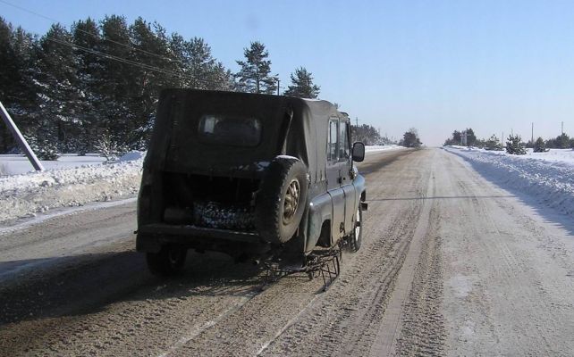 В 5 часов утра — спать невозможно. Сижу за столом, пью чай и думаю, чем теперь это все вытаскивать или же ждать весны. Искренне жаль тракториста — попал на пустом месте, вот ему облом-то. Незаметно пролетает время и уже начинает светать. Прыгаю в Таху и двигаю к ТАНКУ, в поле. Подъезжаю к съезду на поле и вижу что около ТАНКА стоит УАЗик и какой-то тип крутится. Так, видимо кто-то уже что-то захотел спи..ть! — пронеслось в голове. Во народ, три часа меня не было и уже ворье набежало! Подхожу к этому типу, держа лопату явно не для копания... Начинаю осторожно и вежливо: