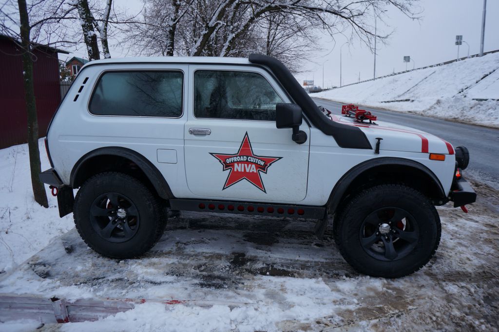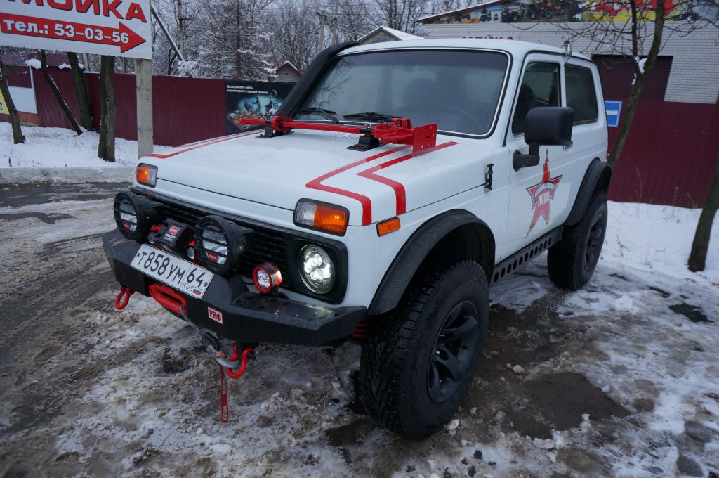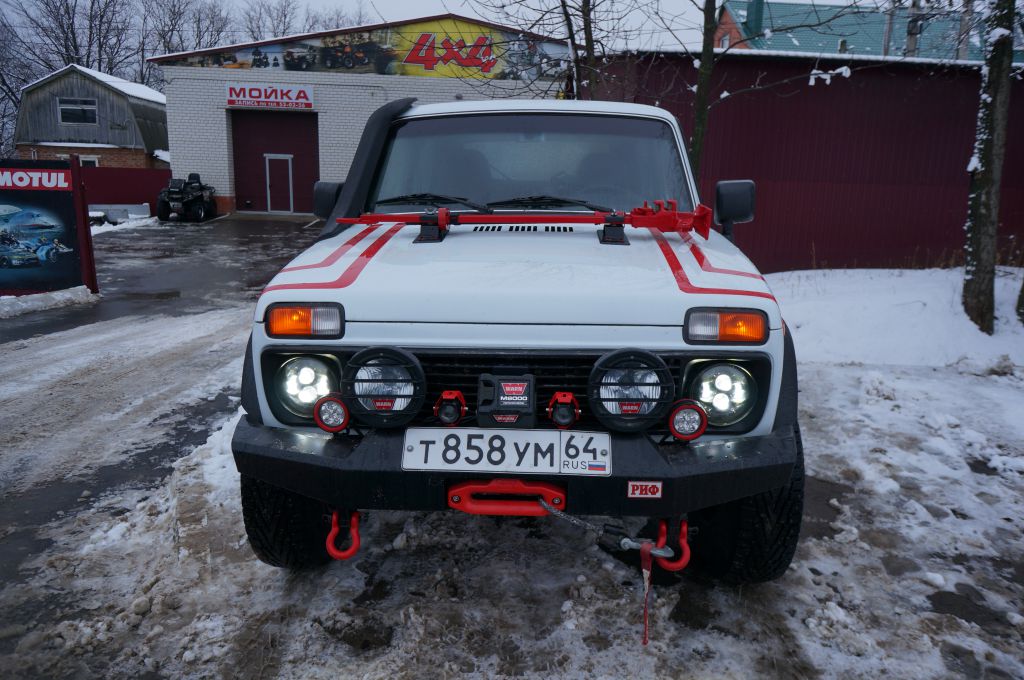 9. Реечный домкрат Hi-Lift 120 см на капоте.