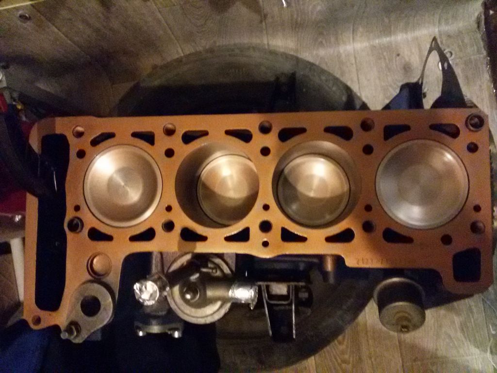 Колено с ходом 84 (косое сверление, новое) врезаны в блок маслофорсунки, установлен полуторный маслонасос, блок хонингован, новые поршня 82.4